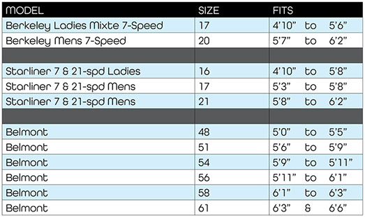 NOTE: All Beach, Boardwalk, Bohemian and Vintage Cruisers are available in one size only.